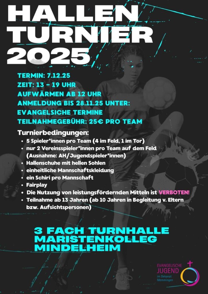 Am 07.12.2025 findet das alljährliche Hallenfußballturnier des AK Sport in der 3-fach- Turnhalle des Maristenkollegs in Mindelheim statt. Jetzt noch anmelden und dabei sein.