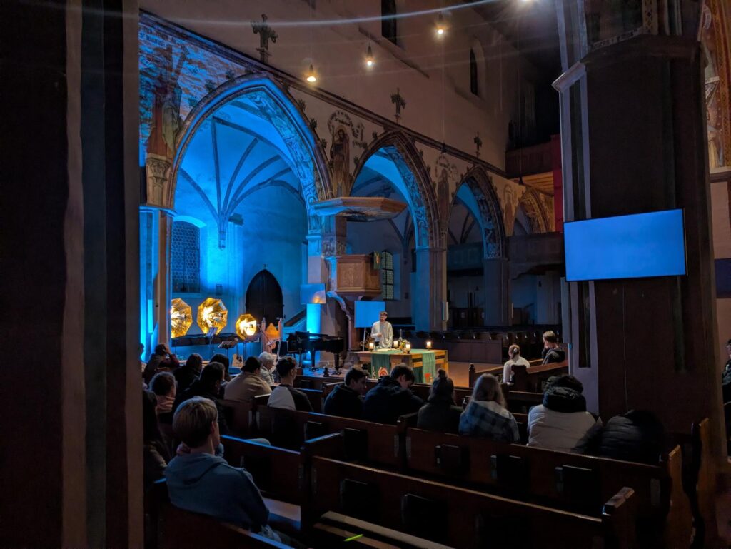 Am 31.10.2025 fand zum ersten Mal in der Memminger Frauenkirche unsere Churchnight statt. In Zusammenarbeit mit dem Arbeitskreis Sport der EJ Memmingen, der Band des CVJM Allgäu und Ehrenamtlichen aus der Kirchengemeinde „Unser Frauen“ gestaltete unser Dekanatsjugendreferent Christian Bernard einen Jugendgottesdienst der ganz anderen Art. Spikeball in der Kirche, alkoholfreie Cocktails und Raum für Begegnung trafen auf Verkündigung und Lobpreis.